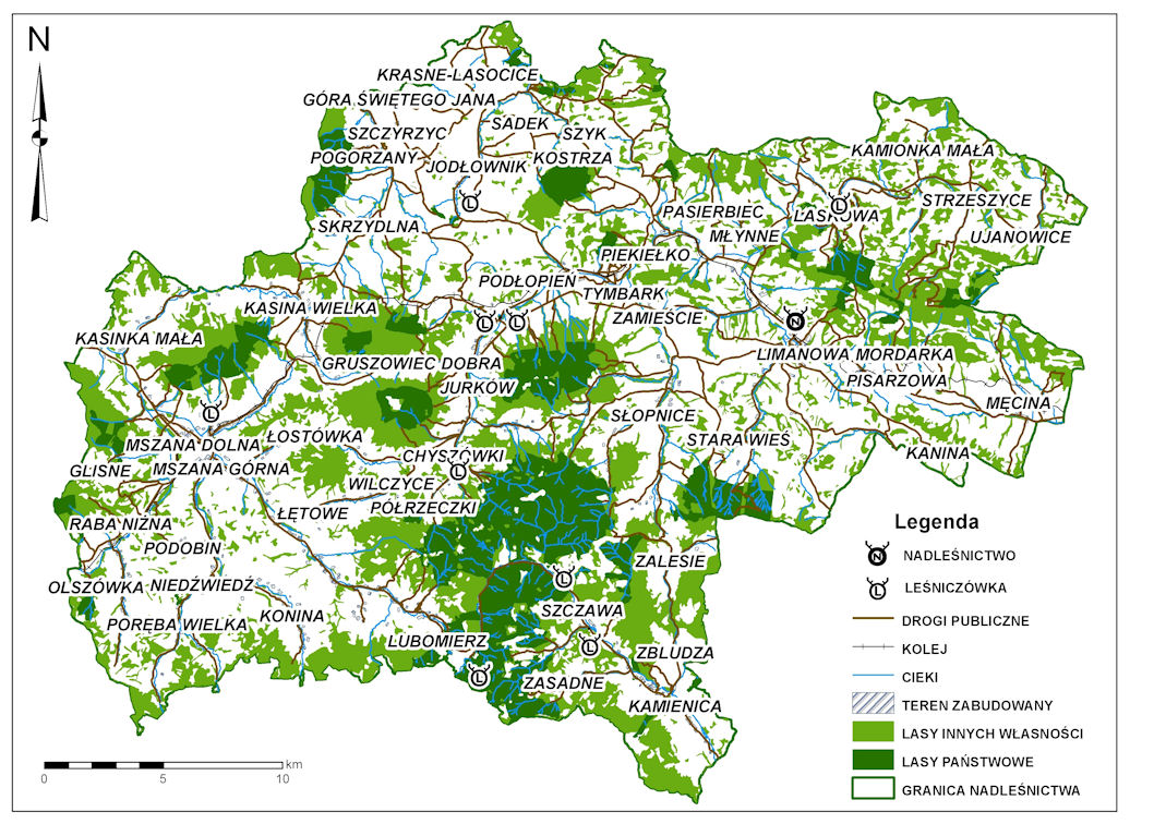 Nadleśnictwo Limanowa usytuowane jest w centralnej części województwa małopolskiego, w powiecie limanowskim. Graniczy z pięcioma nadleśnictwami z RDLP Kraków: Myślenice, Brzesko, Stary Sącz, Krościenko i Nowy Targ, a także z Gorczańskim Parkiem Narodowym.