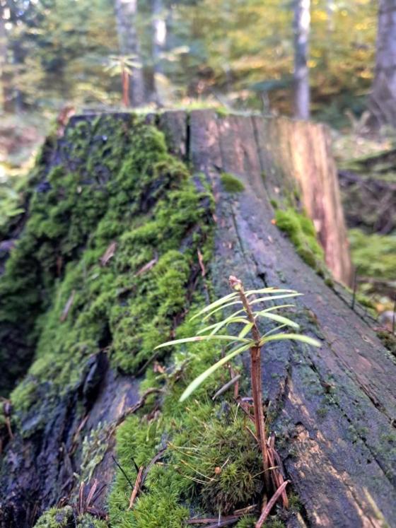 W tym miejscu widzimy naturalne jodłowe, świerkowe i bukowe odnowienie lasu, które jest procesem ciągłej wymiany pokoleń drzew, odtwarzania lasu.